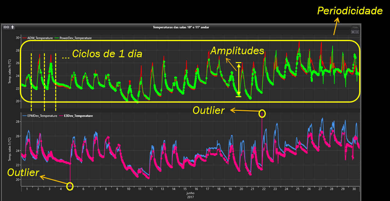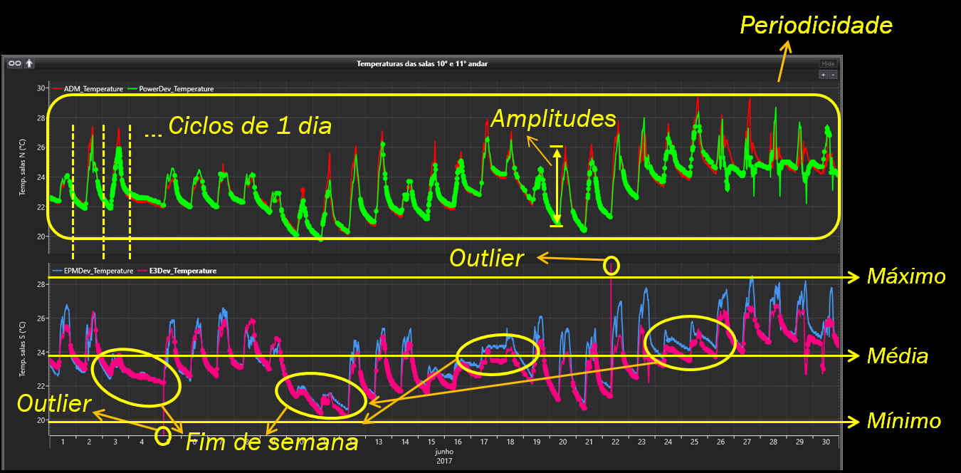 Verificar o maior número possível de informações que podem ser extraídas de uma análise exploratória inicial das temperaturas das salas da Elipse-RS no mês de junho de 2017.
